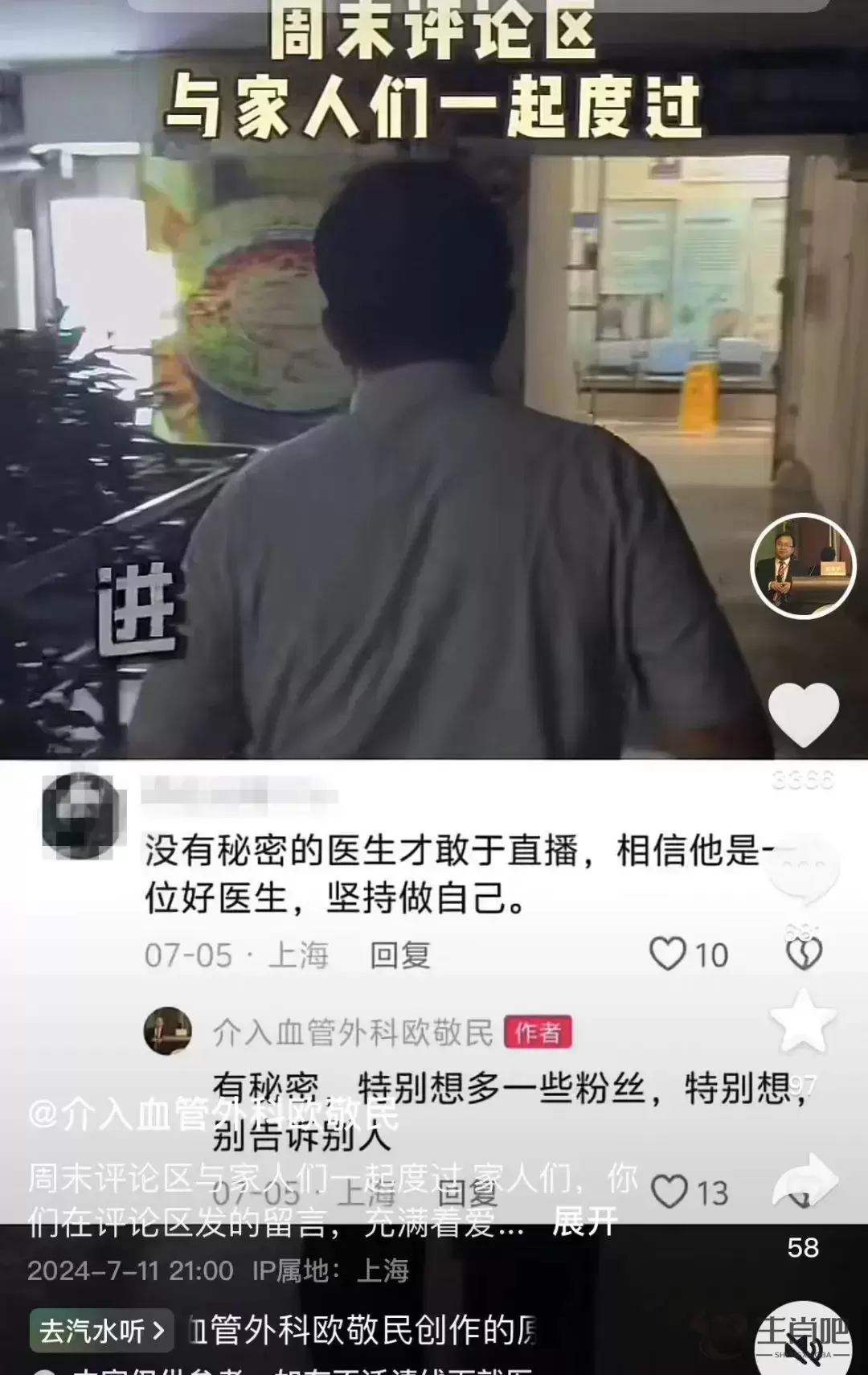 欧敬民医生周末在评论区与网友互动。视频截图