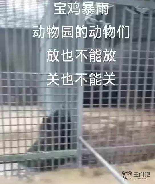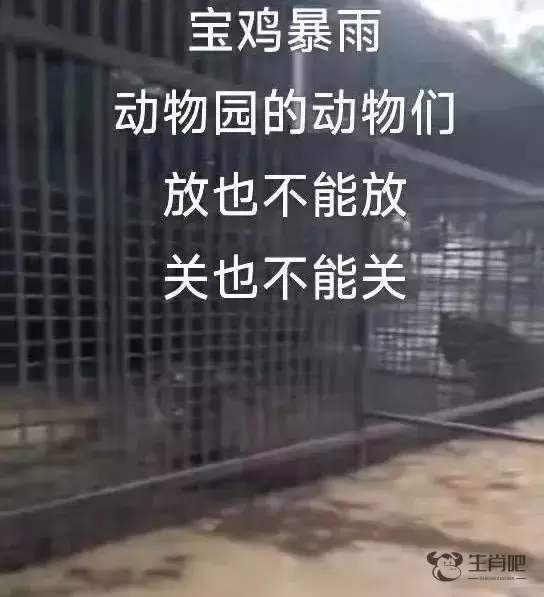 17日,有网友发布视频称“宝鸡暴雨,动物园的动物们放也不能放,关也不能关”。画面显示,动物园中有老虎、熊等猛兽在铁笼中,有较深积水淹到笼中。