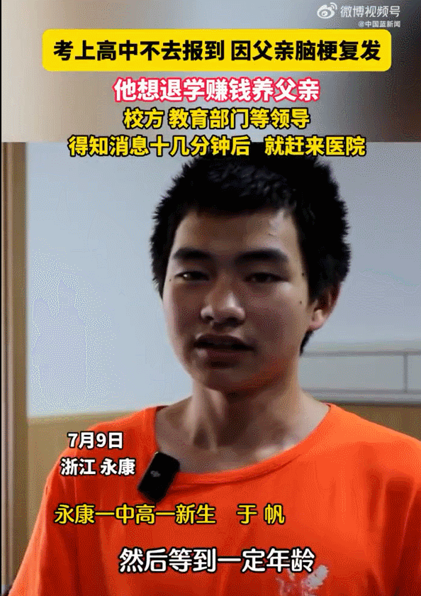 学校表示会安排好于帆的生活费、学费等