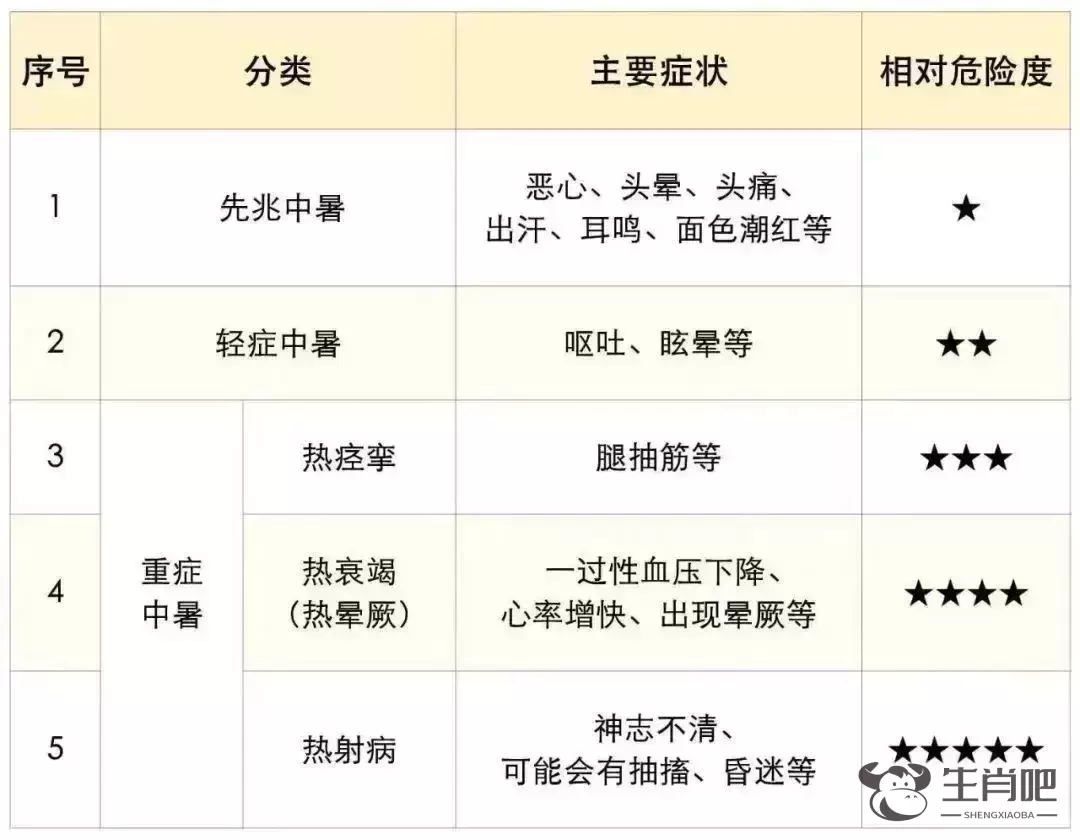 从临床表现来看,中暑由轻到重可分为3大类:先兆中暑、轻症中暑、重症中暑。