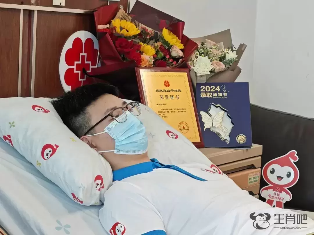 徐子栋身边放着捐献造血干细胞荣誉证书和大学的温州商学院录取通知书