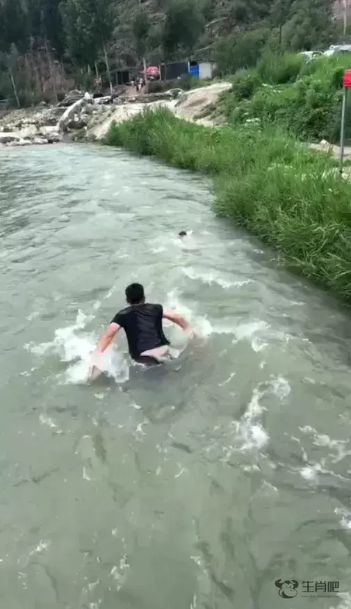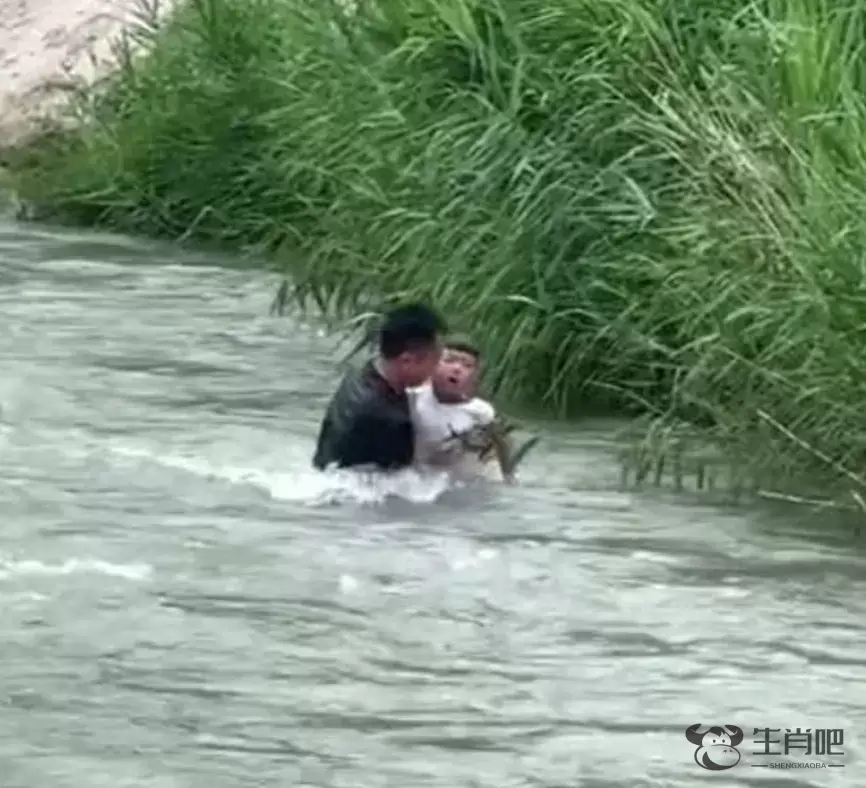 看见有个小孩从上游冲下来