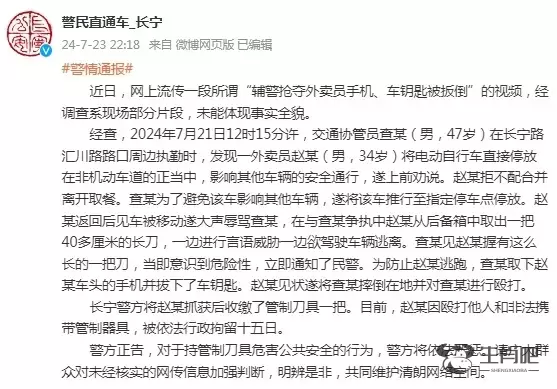 警方正告,对于持管制刀具危害公共安全的行为,警方将依法严惩。请广大群众对未经核实的网传信息加强判断,明辨是非,共同维护清朗网络空间。