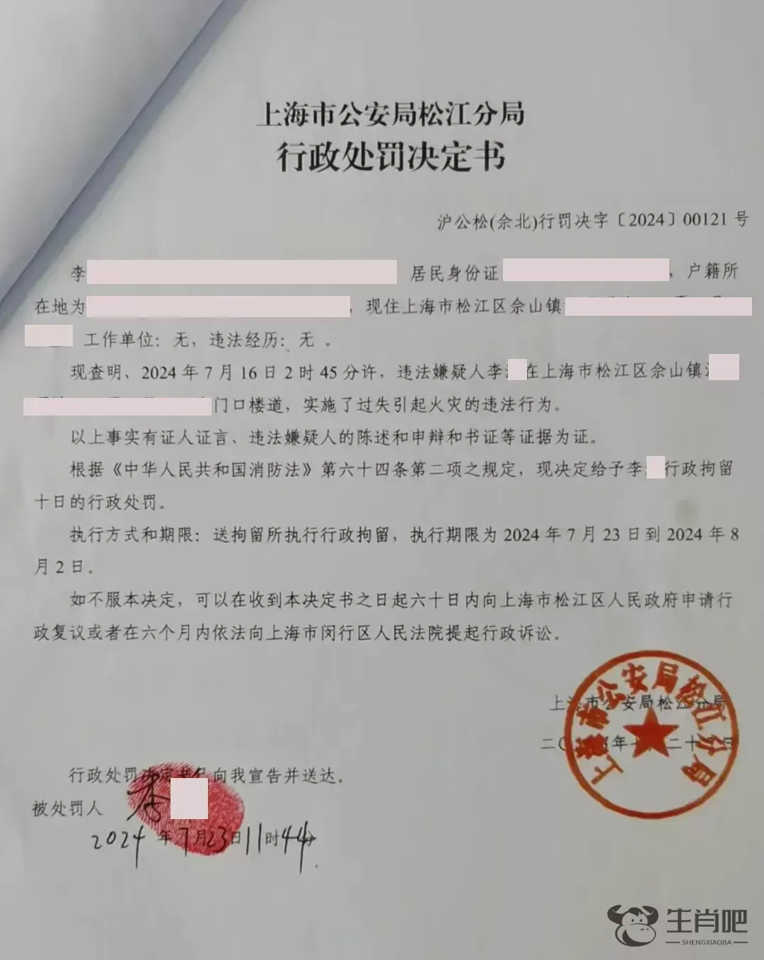 执法部门根据《中华人民共和国消防法》规定,已给予李某行政拘留10日的行政处罚。