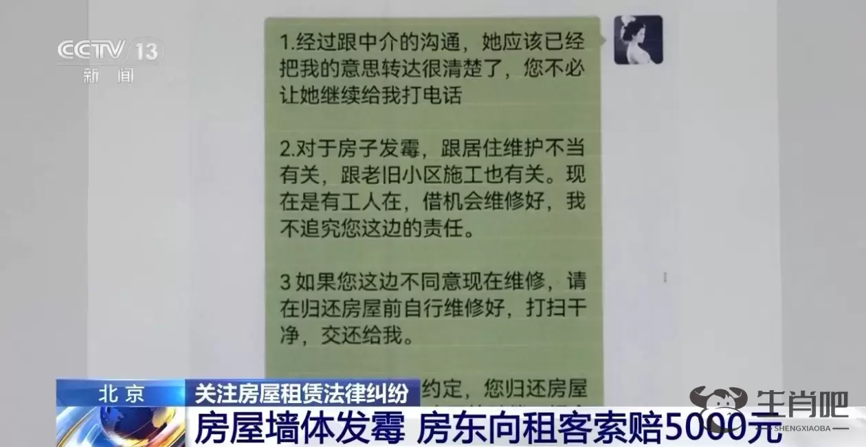 北京市第一中级人民法院法官助理 王欣:房东到现场进行了检查,说因为他们家有孩子,煮东西或者是洗衣服搞的屋里水汽比较大,是这个原因。就说注意开窗通风,平时有水就擦一下,租客也是按照这个要求去做的。