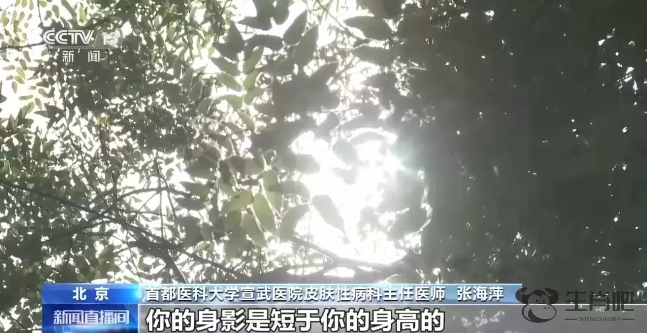 首都医科大学宣武医院皮肤性病科主任医师 张海萍:每天早晨或者傍晚的时候,太阳比较倾斜,影子会比较长;正午的时候太阳高高在上,影子短于身高,这时紫外线强度会比较强,要远离暴露特别强的地区,做好防护。