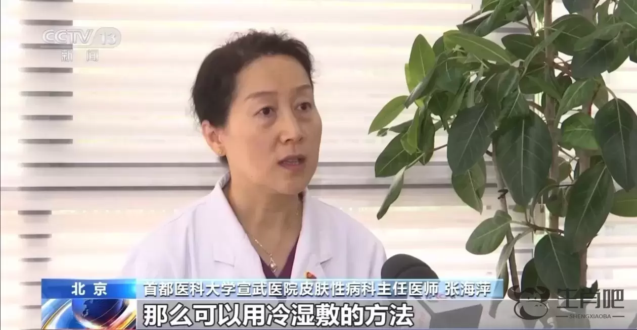 首都医科大学宣武医院皮肤性病科主任医师 张海萍:如果只是红肿疼痛,可以用冷湿敷的方法。如果晒伤比较厉害,出现了水疱甚至大疱的时候,就要及时到医院诊治,以免感染 。