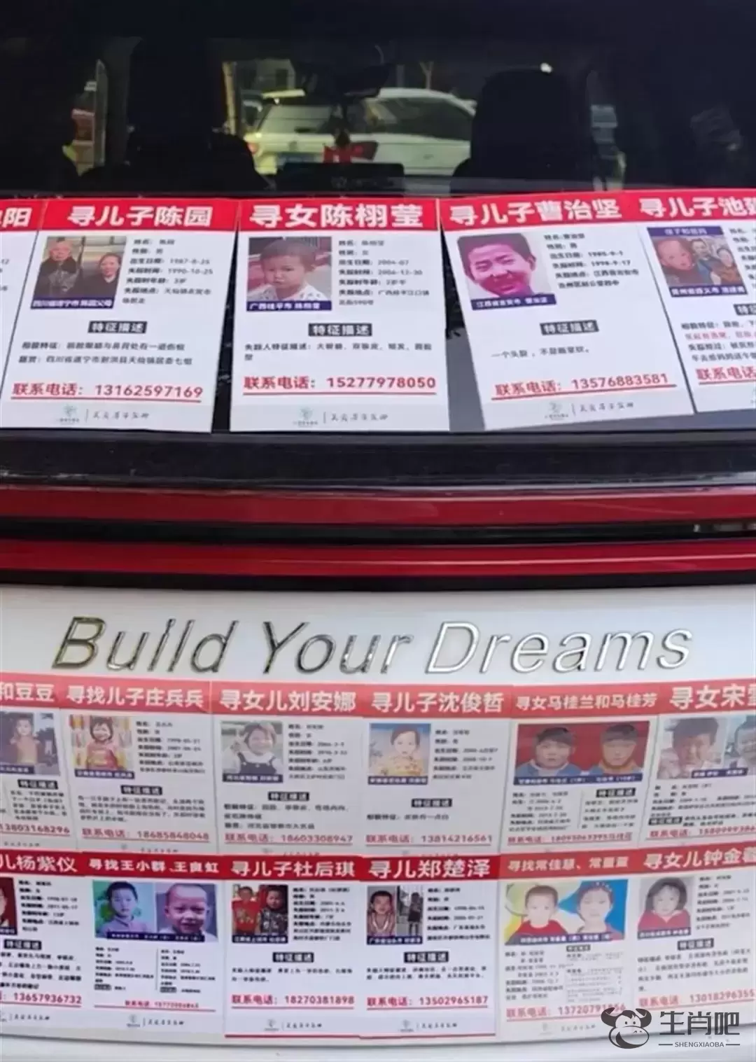 启事上包括失踪人员的姓名、性别、失踪时间和失踪地点以及家属的联系方式,感觉车后的“Build your dreams”也在那一刻具象化。