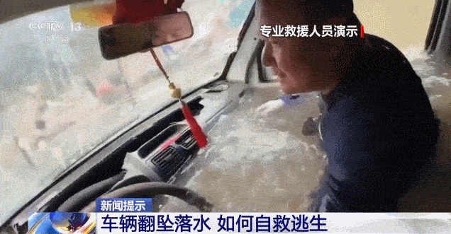 进入主汛期,强降雨天气容易造成河湖水位明显上涨、山洪等灾害,增加车辆意外落水的风险。驾车出行,如果车辆不小心掉进水里,司乘人员应如何进行自救、逃生?