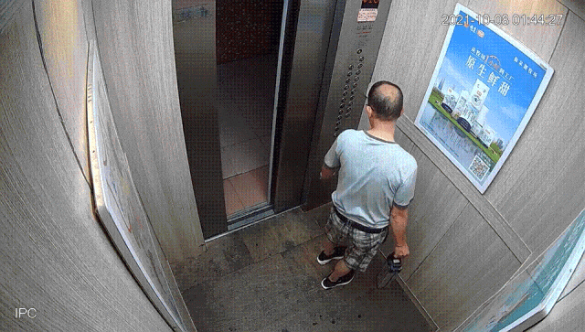电梯监控视频显示,当天凌晨1时44分,陈某提着电池走入电梯。