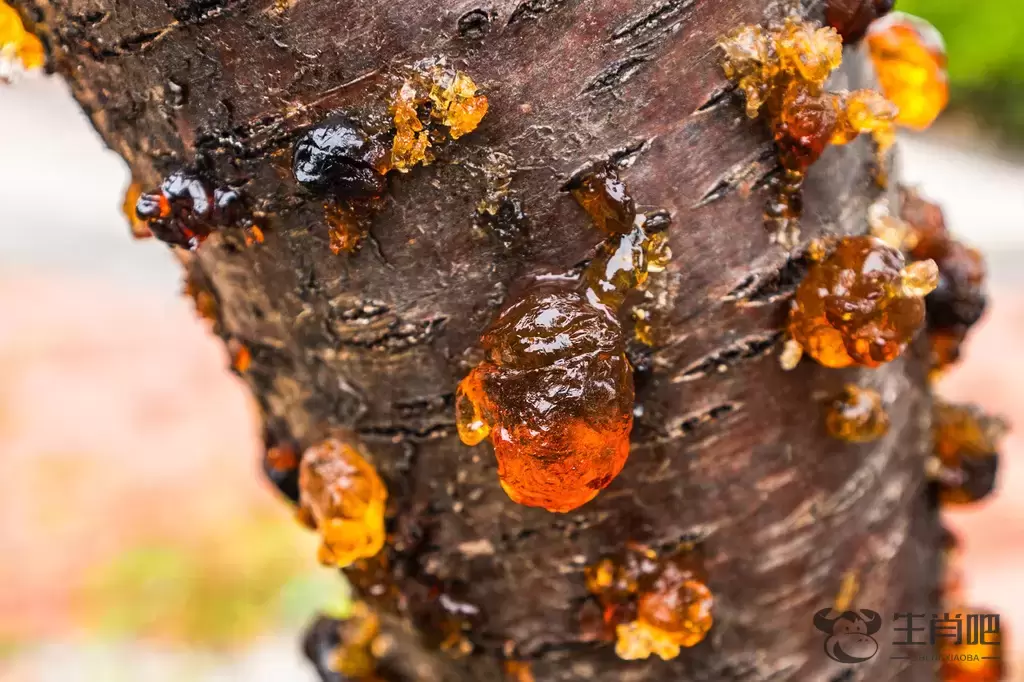 桃胶的形成是桃树在外力作用下产生伤口,比如天牛会啃食树皮造成伤口,或者修剪枝干后留下伤口,树干内营养物质传输时会从伤口渗出,比较黏稠的液体通过太阳晒干,产生固体形成桃胶。