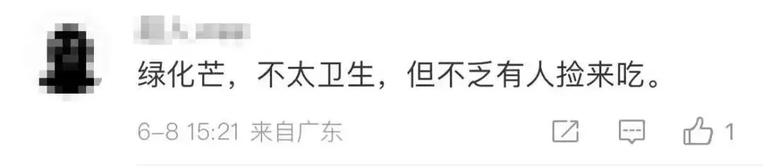 绿化带种植的芒果树是绿化植物,果挂枝头也同样是城市园林景观的一部分,不具备食用价值。