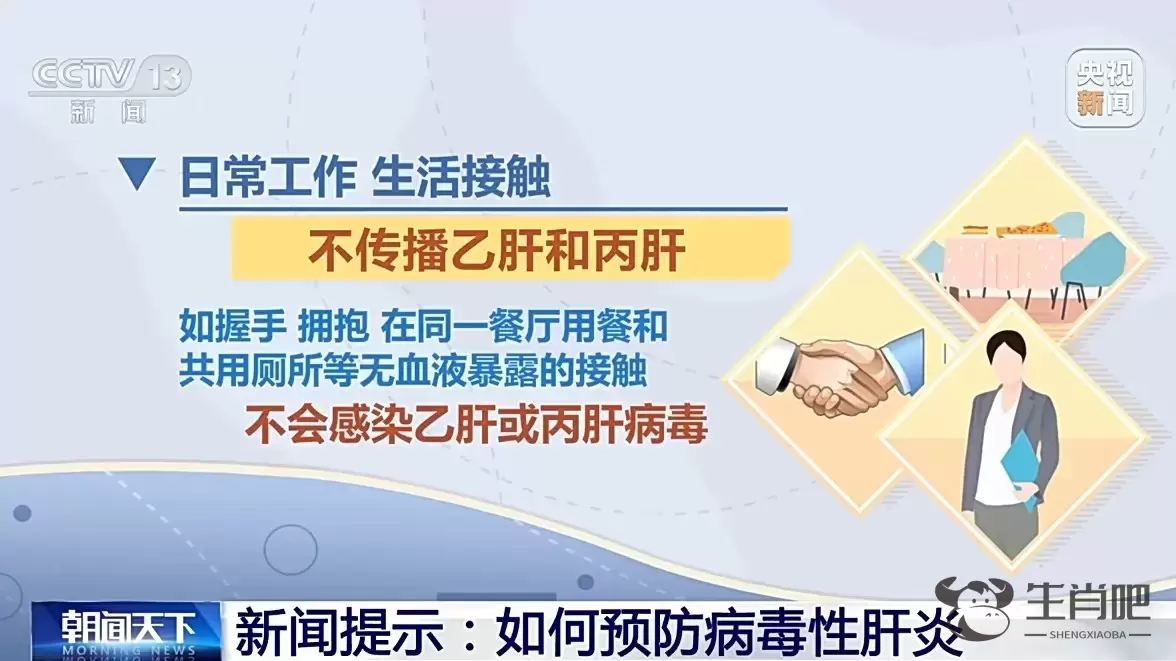 日常工作、生活接触,不传播乙肝和丙肝,如握手、拥抱、在同一餐厅用餐和共用厕所等无血液暴露的接触,不会感染乙肝或丙肝病毒。