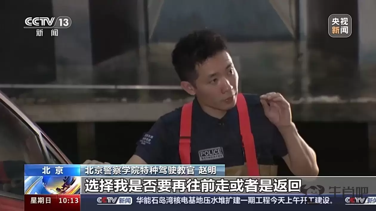 北京警察学院特种驾驶教官 赵明:车辆在入水的时候,很多驾驶员觉得水深或者是长,想快速通行,很多车辆都是冲过去的。但是往往有很多误在水里的车都是因为速度过快,导致发动机进水或者是电路部分进水,造成车辆停滞在涉水区域。所以,第一点慢,让车辆能多慢就多慢地入水,且在水里慢速通行。二探,是在慢速入水的基础上,通过观察水位的高度,选择我是否要再往前走或者是返回。前两点都做到了以后,才能正确地涉水通过。