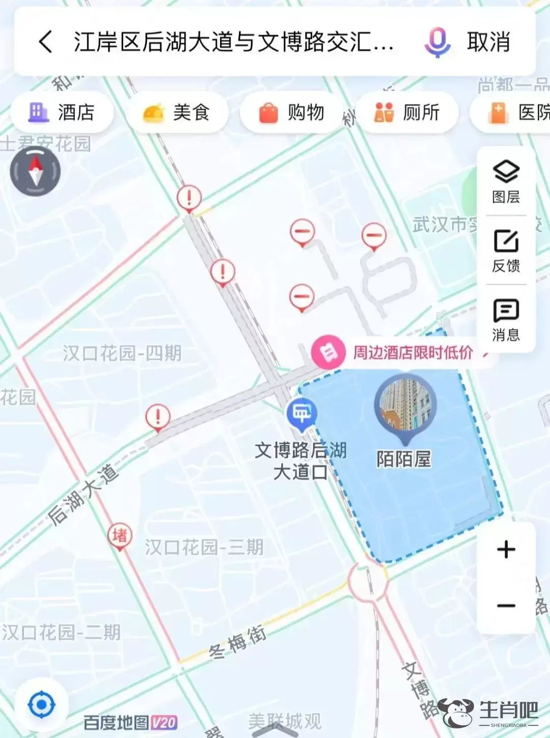 8月1日晚,潇湘晨报记者查看百度地图发现,武汉市江岸区后湖大道与文博路交汇处发生道路险情。