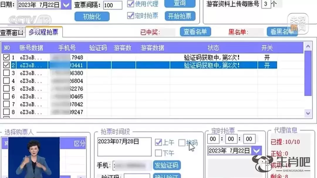 据犯罪嫌疑人交代,他们只需要在抢票软件中提前输入游客的身份证、手机号等个人信息,便可以实现快速批量抢票,成功率可达到百分之五六十。