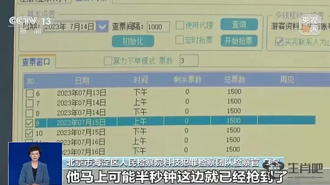 北京市海淀区人民检察院科技犯罪检察团队检察官白磊:为了让“抢票手”“键盘手”更好抢号,把“抢票软件”做得看来很傻瓜化的,包括游客资料,抢号时间分上午还是下午,总票源以及抢号用的手机号。暴力下单模式,抢号的频率可能会很快。