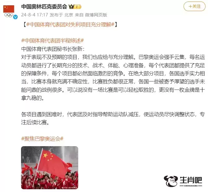 对于表现不及预期的项目,我们也应给与充分理解。巴黎奥运会强手云集,每名运动员都进行了长期充分的技术、战术、体能、心理准备,每个代表团都提供了充足的保障条件,每个项目都必然面临激烈的竞争。在绝大部分项目,各国选手实力相当,比赛本身就充满不确定性,比赛胜负都很正常,各国一些被寄予厚望的选手未能问鼎的战例很多。可以说没有一场比赛是可以轻松取胜的,更没有一枚金牌是十拿九稳的。