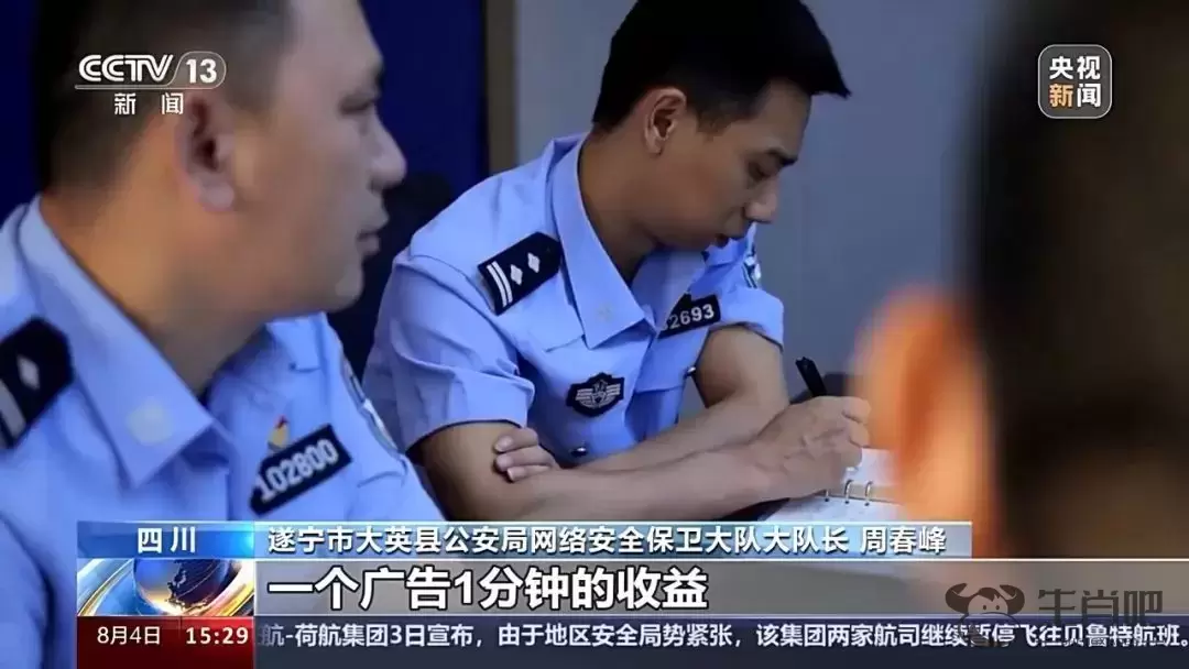 遂宁市大英县公安局网络安全保卫大队大队长 周春峰:一般一个账号会加挂二三十个链接或者广告,这部分的广告他是按分钟来收费,一个广告1分钟的收益大概在一角钱,一个账号一天按24小时算,这个收入也是可观的。