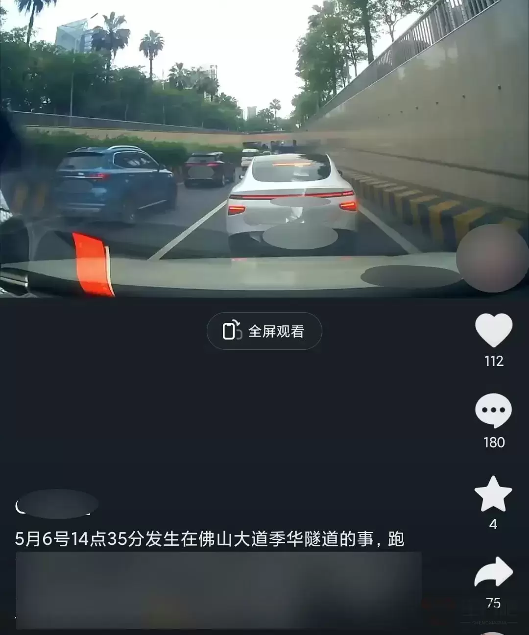 近日,车主李先生向佛山禅城交警反映在佛山大道季华隧道口遇到恶意别车。他好端端地排队依次进入隧道,结果一辆白色小车从右侧临近隧道口位置压实线加塞进来,由于两车距离太近,为了安全着想,李先生只好降下车速并鸣笛提醒对方。可对方车主还是不缠不休,进入隧道后仍再次跨实线从左侧变道进入李先生车辆前方,影响了正常的行车安全。