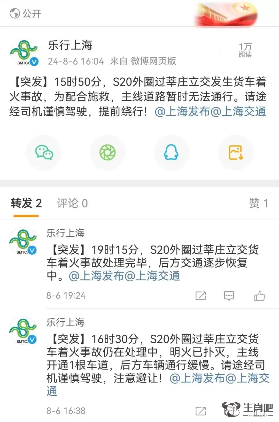 当天,上海市交通委员会交通指挥中心官方微博@乐行上海 连续发布三则突发消息: