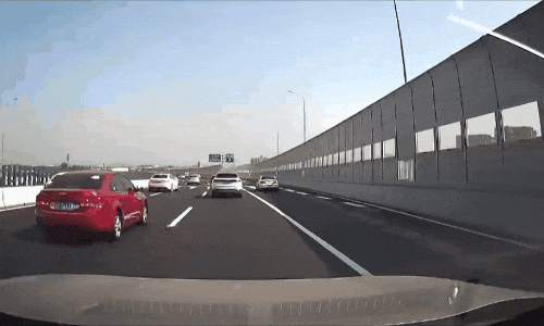 网友的行车记录仪画面显示,当时,一辆白色轿车沿嘉闵高架南向北主线一号车道行驶,至金沙江西路匝道附近时,向右连续变道,疑似欲下高架。谁料,白车在变道过程中,与三号车道上一辆正常直行的SUV发生碰擦。之后,白车又变回二号车道,二号车道后方正常行驶的红色轿车刹车不及,与白车发生追尾。