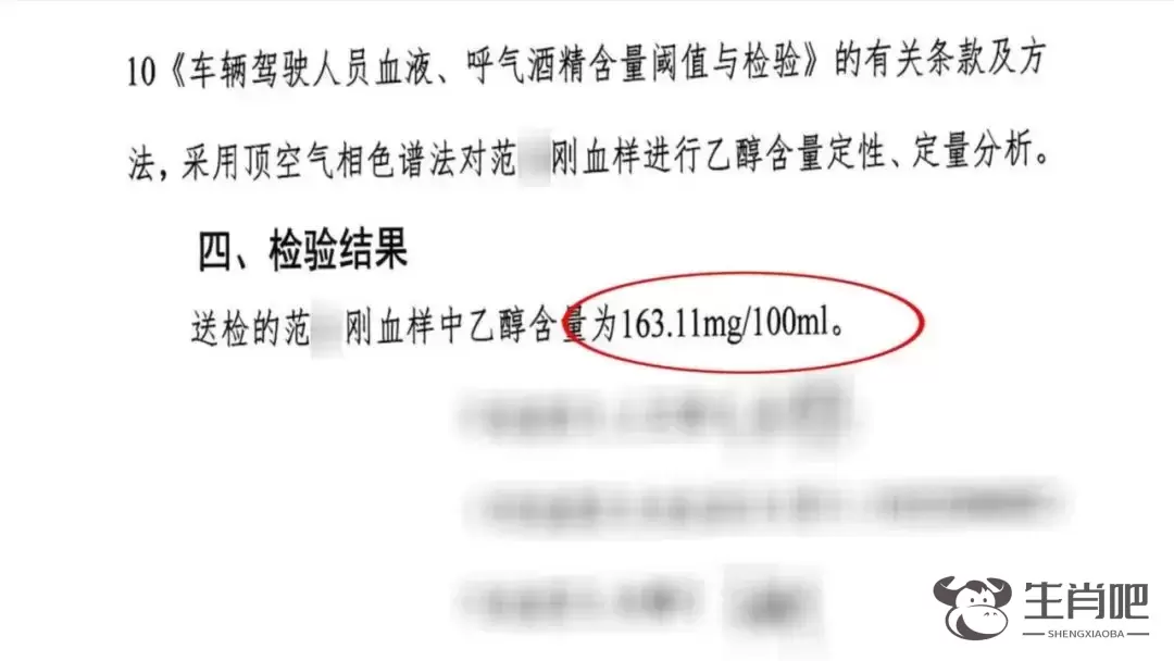 经过抽血化验范某刚的血液中酒精含量为每百毫升163.11毫克。