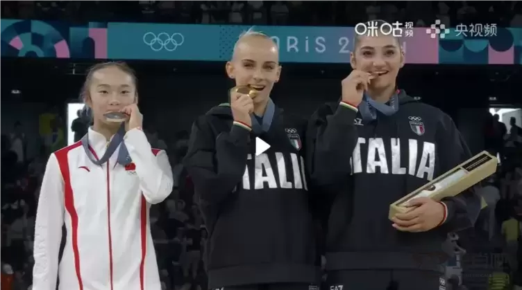 这一幕也被细心的网友们捕捉到了,还有人用手绘的形式把咬奖牌的周雅琴做成了表情包,甚至和周雅琴一起领奖的两位意大利选手达马托和埃斯波西托也转发了。