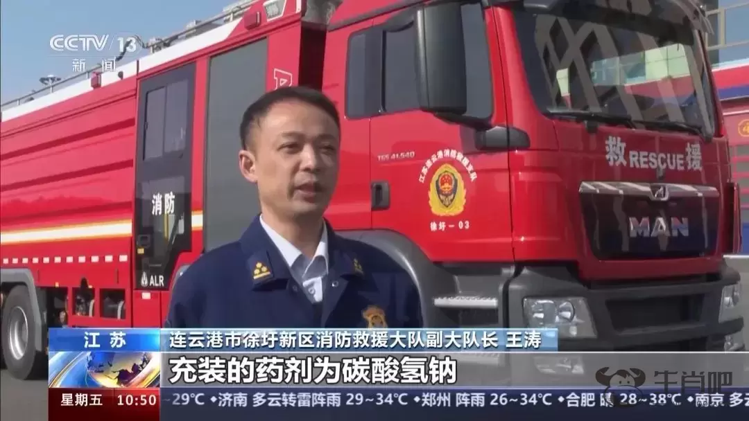 连云港市徐圩新区消防救援大队副大队长 王涛 :合格灭火器里面充装的药剂为碳酸氢钠或者磷酸铵盐干粉灭火剂,能有效地扑灭初期火灾。而试验中假的灭火器,据我们的观察和判断,里面充装的应该是廉价劣质的石粉,石粉是一种灭火剂的辅料,起不到灭火的作用和效果。
