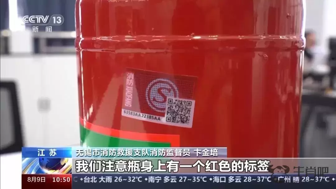 无锡市消防救援支队消防监督员 卞金培 :其实方法很简单,我们注意到瓶身上有一个红色的标签,标签里面有一个二维码,我们只要拿出手机,扫描瓶身上的二维码,核对产品信息,和我们灭火器上面标明的信息是否一致,就能辨别是不是一具合格的灭火器。