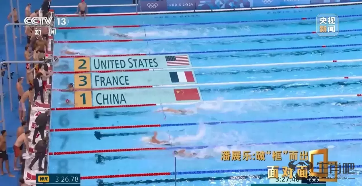 3分27秒46,中国队战胜美国队,首次获得该项目的奥运金牌,终结了美国队在这一项目上的垄断。其中,潘展乐在最后一棒自由泳分段中打破46秒的局限,游出了45秒92的成绩。尽管非混合类接力游泳的首棒选手才能被认证为世界纪录,但这已是人类首次游进46秒内,这距离潘展乐闯进48秒大关,仅过去了两年。