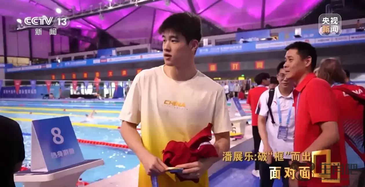 潘展乐:肯定,正常人都不会舒服,但是首先还是恭喜吧,有人能打破我的纪录。得有个人领路,然后大家才能从这个框框里冲出来。就像我现在达到了这个成绩,我未来突破得更高更远,后面也会有人,不只是我们国家,也有可能是美国、英国、澳大利亚,或者说其他国家,也会有人站出来去突破这些。自从我出来以后,比我小1岁的王浩宇就比我晚了大概半年,突破了48秒。