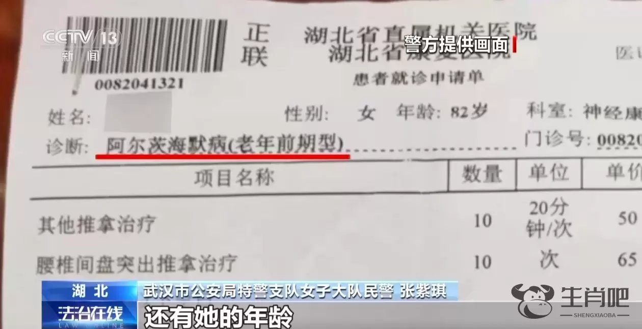 武汉市公安局特警支队女子大队民警 张紫琪:通过医院就诊单,我们看到了婆婆的姓名、年纪,她是阿尔茨海默病的患者。