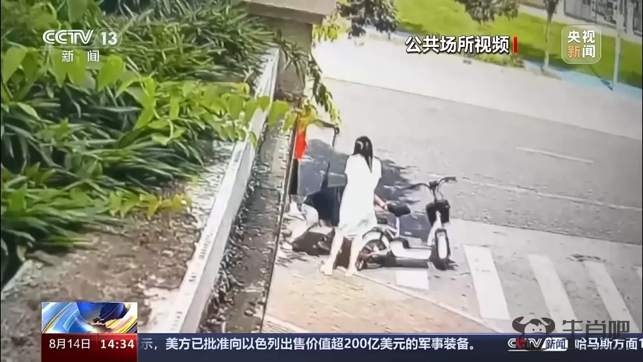 超长防晒衣卷入车轮 导致骑车人摔倒