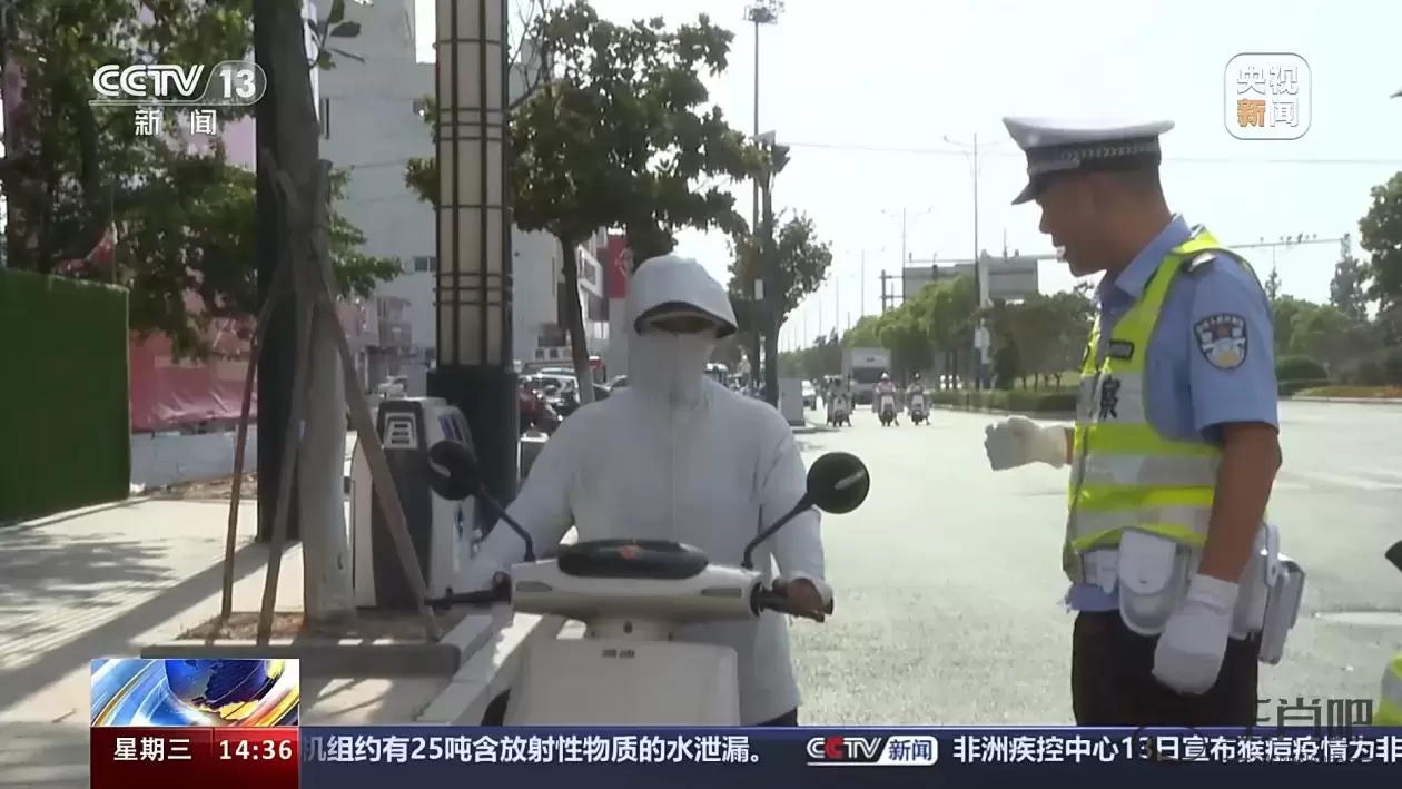 虽说现在已经立秋,但不少地区晴晒天气依然热度不减,有的骑行人员为了遮挡紫外线,穿着长款防晒服骑车,没想到让自己身陷险境。
