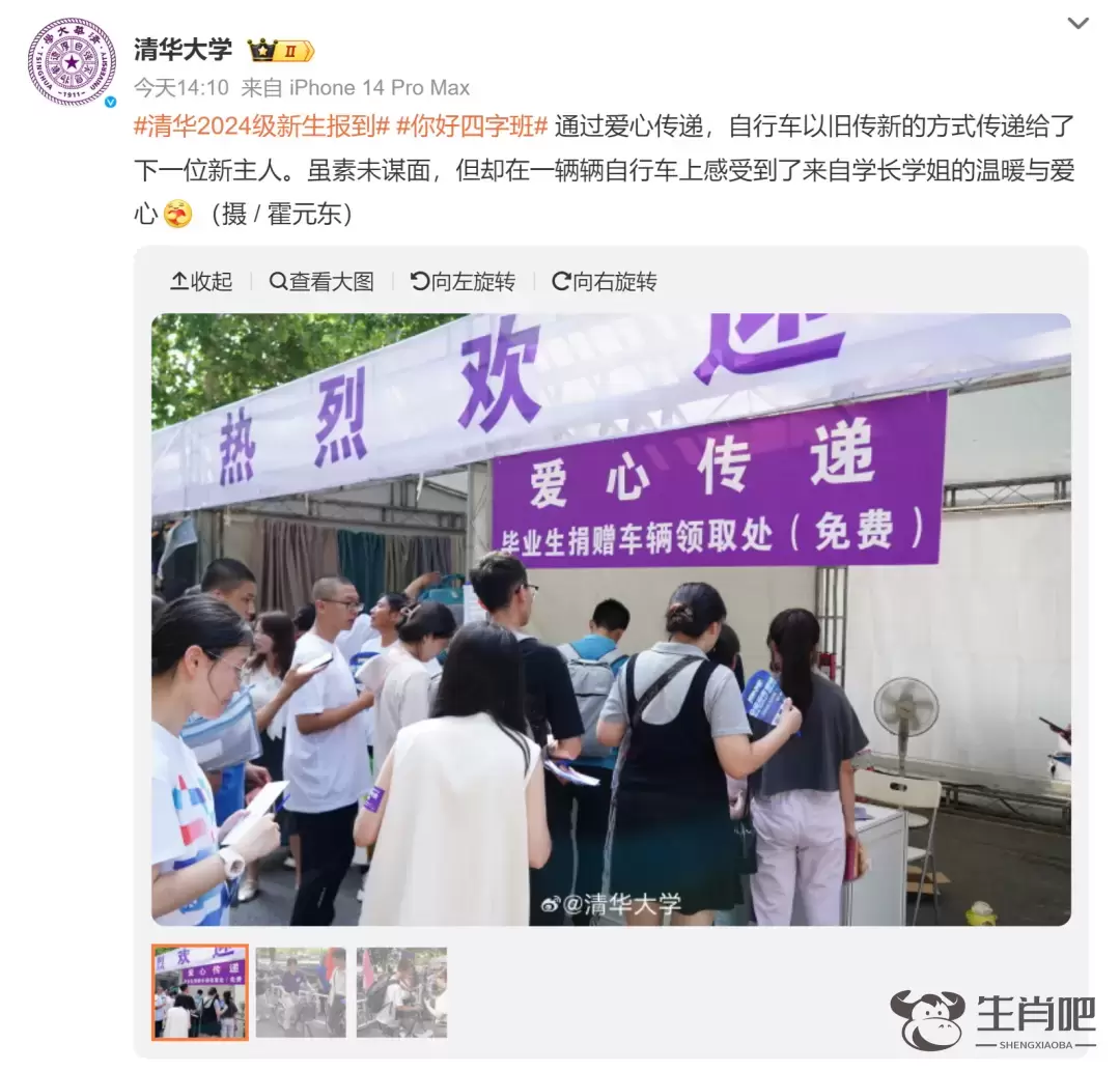 值得一提的是,报到现场还为新生设有“毕业生捐赠车辆领取处”。学长学姐的自行车传递给了素未谋面的学弟学妹。
