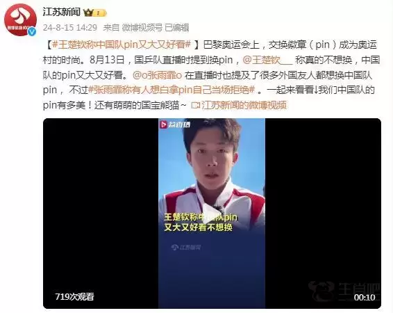 巴黎奥运会上,交换徽章(pin)成为奥运村的时尚。8月13日,国乒队直播时提到换pin,王楚钦称真的不想换,中国队的pin又大又好看。张雨霏在直播时也提及了很多外国友人都想换中国队pin, 不过张雨霏称有人想白拿pin自己当场拒绝。一起来看看↓我们中国队的pin有多美!还有萌萌的国宝熊猫~