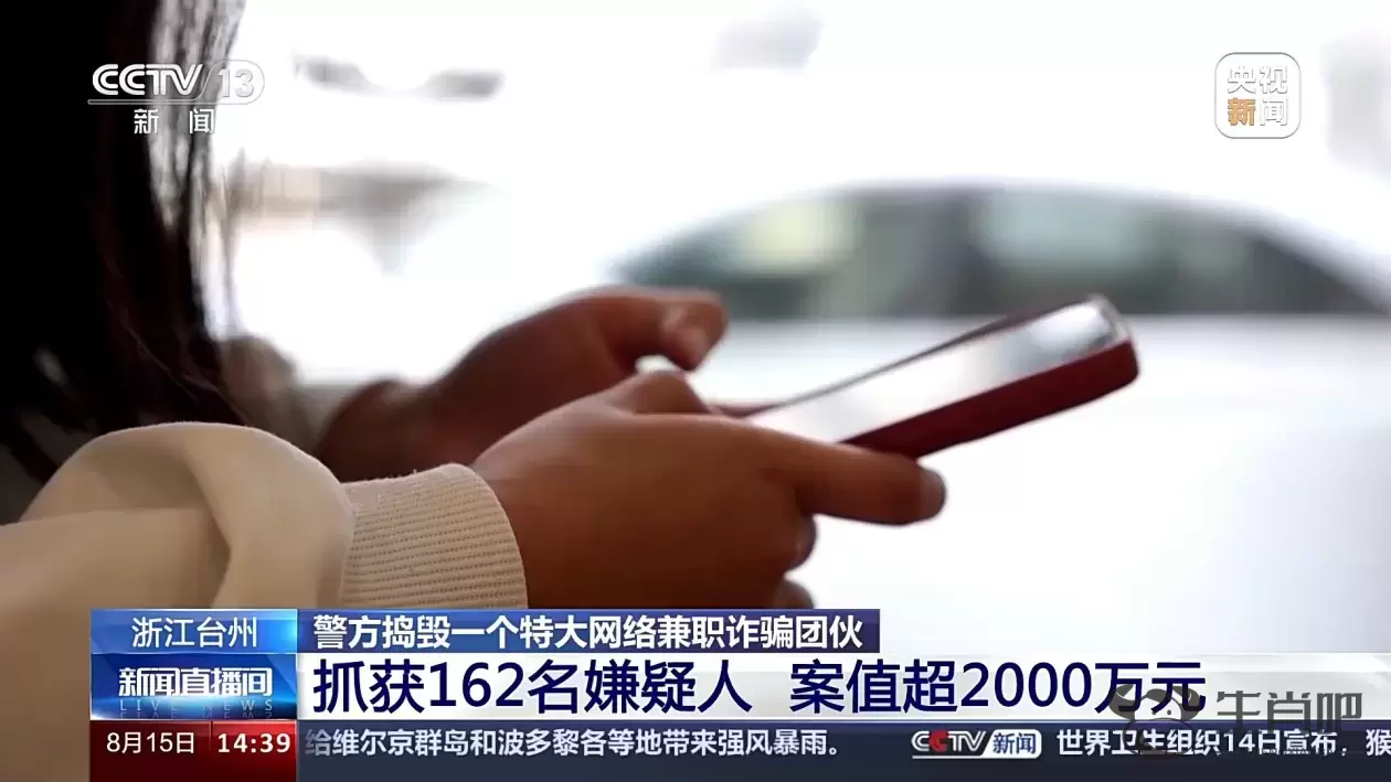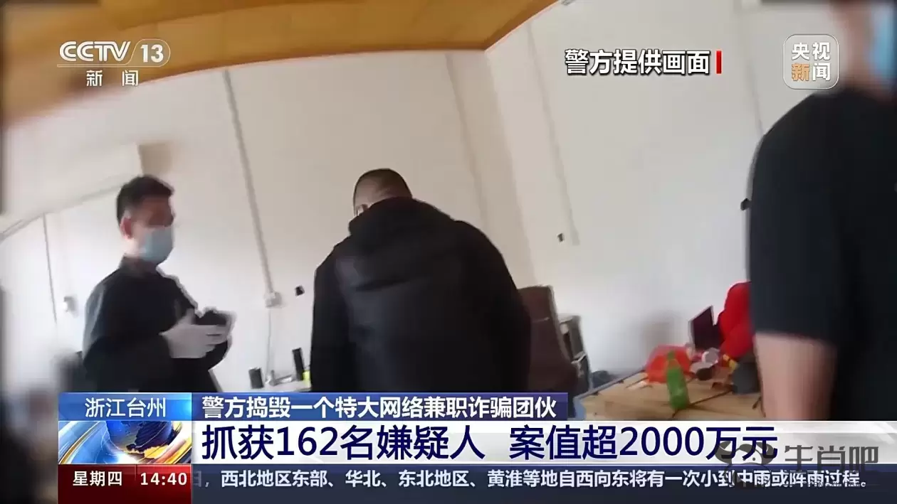 近日,浙江台州椒江警方公布了一起特大诈骗案,捣毁一个特大网络兼职诈骗团伙,抓获犯罪嫌疑人162人,涉案金额2000多万元。