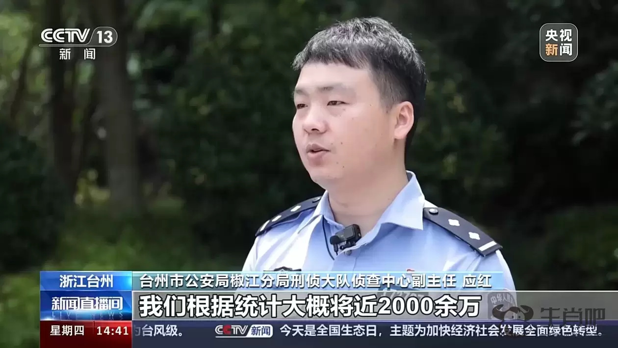 台州市公安局椒江分局刑侦大队侦查中心副主任应红:他们从2019年到2022年期间总涉案金额,我们根据统计大概2000万,总的受害人将近8万人。