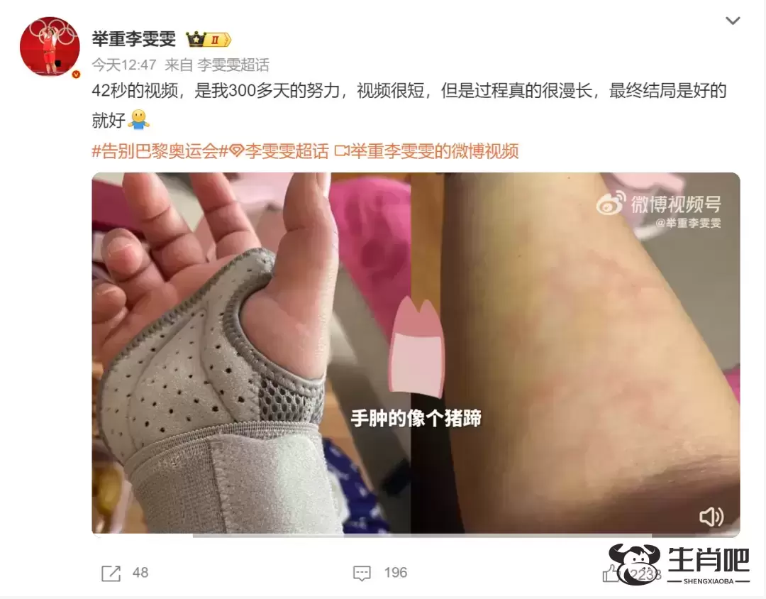 “2023年右肘负伤”,李雯雯在视频中写道:“手肿的像猪蹄”。