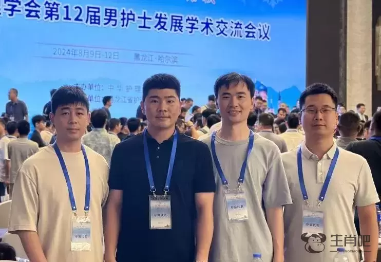 郑州大学附属传染病医院的岳昕、朱鹏飞、姬冬寒和王亚飞四位男护士在中华护理学会第12届男护士发展学术交流会议合影。受访者供图