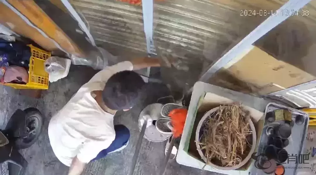 ▲监控中,男子喷洒不明液体 受访者视频截图