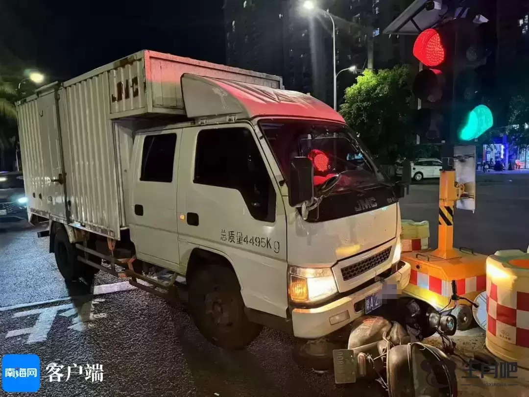 此时,黄某岗驾驶琼A2NW**号轻型厢式货车沿新大洲大道由东向西正常行驶,与闯红灯的两轮电动自行车相撞,造成龙某清受伤,双方车辆不同程度受损的事故。