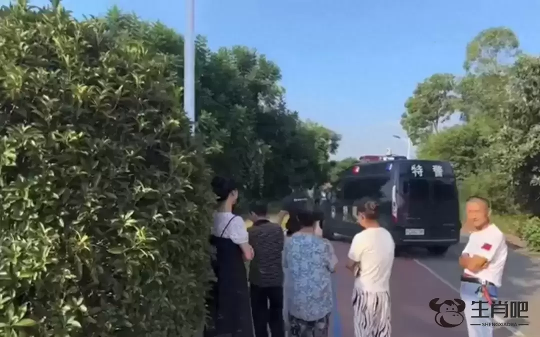 视频显示,水库旁站着不少人员围观,现场有特警字样的警车与公安车辆。