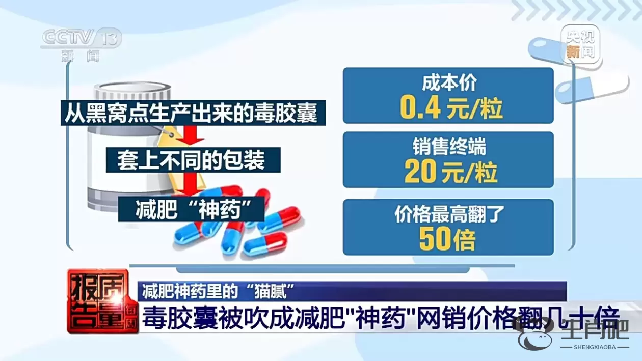 就这样,从黑窝点生产出来的毒胶囊,套上不同的包装,摇身一变就成了网络中被吹捧上天的减肥“神药”,从成本价的0.4元每粒,到销售终端的20元每粒,价格最高翻了50倍。
