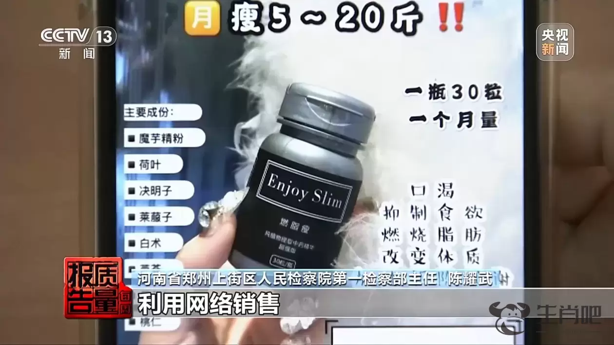河南省郑州上街区人民检察院第一检察部主任 陈耀武:在减肥产品中非法添加的违禁物质主要是西布曲明。此类违法犯罪的行为主要特点有,隐蔽性比较强,犯罪成本低,获取利润高,利用网络销售能够形成分工协作的产业链。