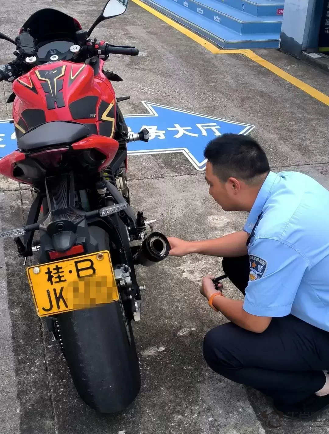 “经过我们的核查,你车辆的排气管已经属于非法改装。”驾驶人安某便是被查处的违法人之一。其在环江滨水大道的“炸街”行为被检测系统精准锁定,警方迅速响应,通过系统信息联系到安某,并引导其前往交警大队接受进一步调查。经核查,安某的摩托车排气管存在明显非法改装迹象,柳州交警依法对其进行了处罚,并责令其将车辆恢复至合法状态。
