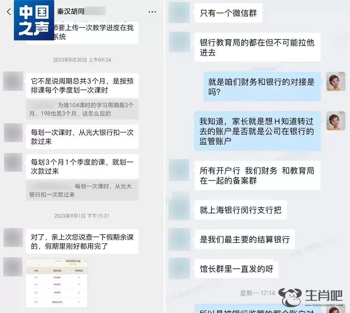 有家长向记者提供了一份2023年购课时销售的介绍,其中提及了秦汉胡同的监管账户。家长提供的与机构销售的聊天记录显示,销售特意给家长发了公司内部的聊天记录,称家长的钱都打往了监管账户。每上一次课,公司才会从监管账户中扣一次款。