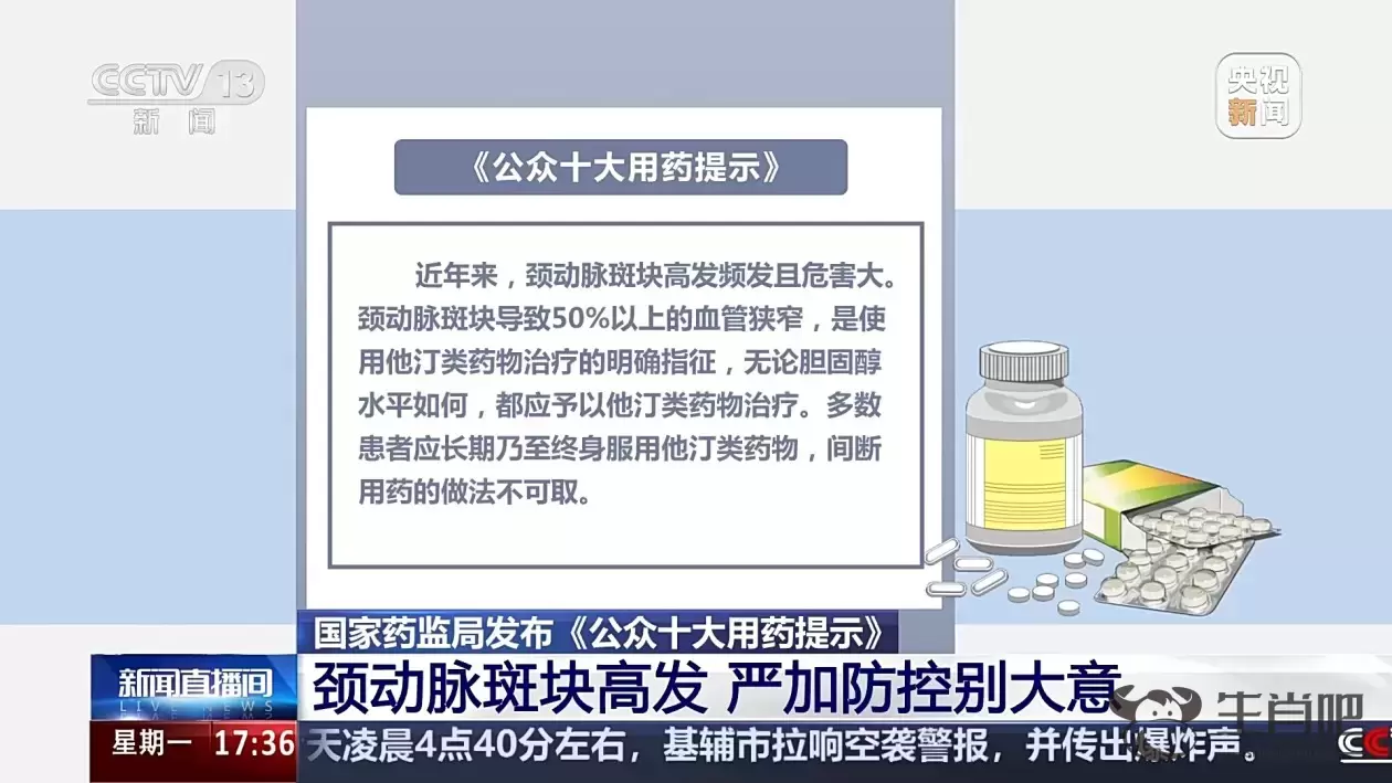 近年来,颈动脉斑块高发频发且危害大。颈动脉斑块导致50%以上的血管狭窄,是使用他汀类药物治疗的明确指征,无论胆固醇水平如何,都应予以他汀类药物治疗。多数患者应长期乃至终身服用他汀类药物,间断用药的做法不可取。