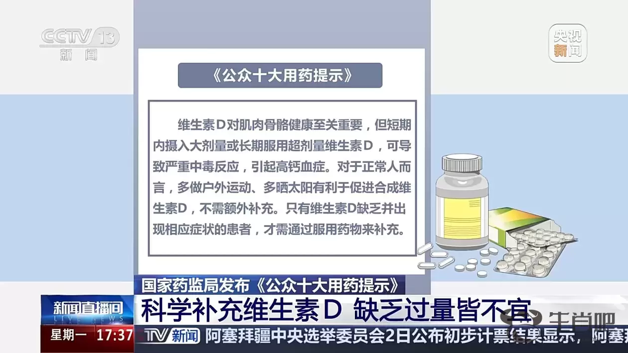 维生素D对肌肉骨骼健康至关重要,但短期内摄入大剂量或长期服用超剂量维生素D,可导致严重中毒反应,引起高钙血症。对于正常人而言,多做户外运动、多晒太阳有利于促进合成维生素D,不需额外补充。只有维生素D缺乏并出现相应症状的患者,才需通过服用药物来补充。